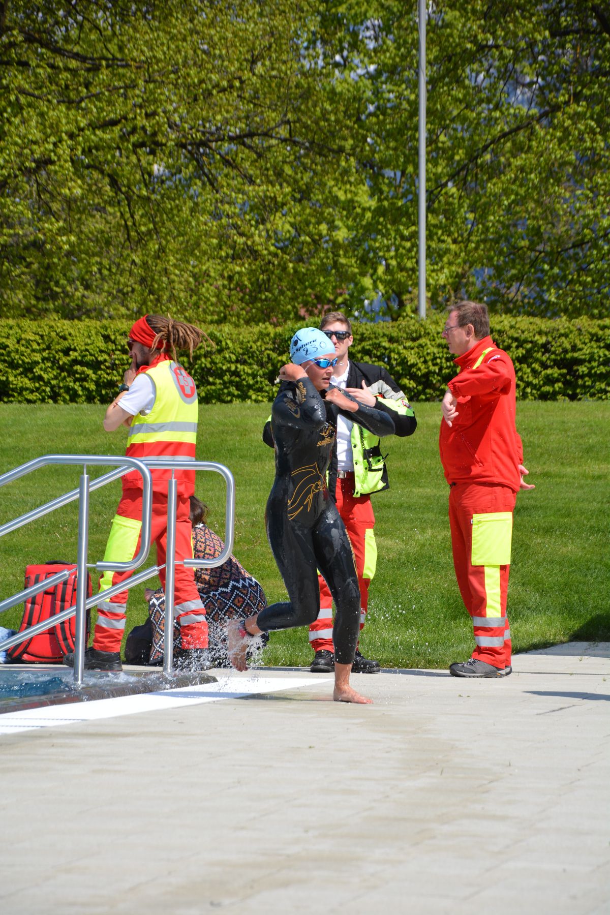 Die Juniorinnen stürzten sich dann am Nachmittag doch noch, geschützt durch einen Neopren, in die Fluten des Sportbeckens. Marilena Swidrak belegte in einem klassischen Triathlon mit Schwimmen / Radfahren und Laufen Platz 2 hinter Therese Feuersinger.