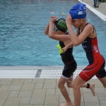 Die zu absolvierenden Distanzen lagen bei 800m Schwimmen auf der 50m-Bahn und 5000m Laufen mit Start nach der Gundersen-Methode auf der Laufbahn des BSFZ Südstadt.